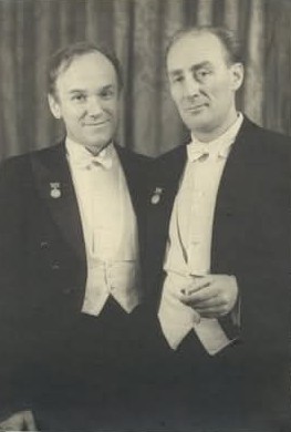 Una molto rara immagine di Sviatoslav Richter (a sin.) con il direttore d'orchestra Evgheny Mravinsky a Leningrado, nel 1950. Richter aveva allora solo 35 anni.